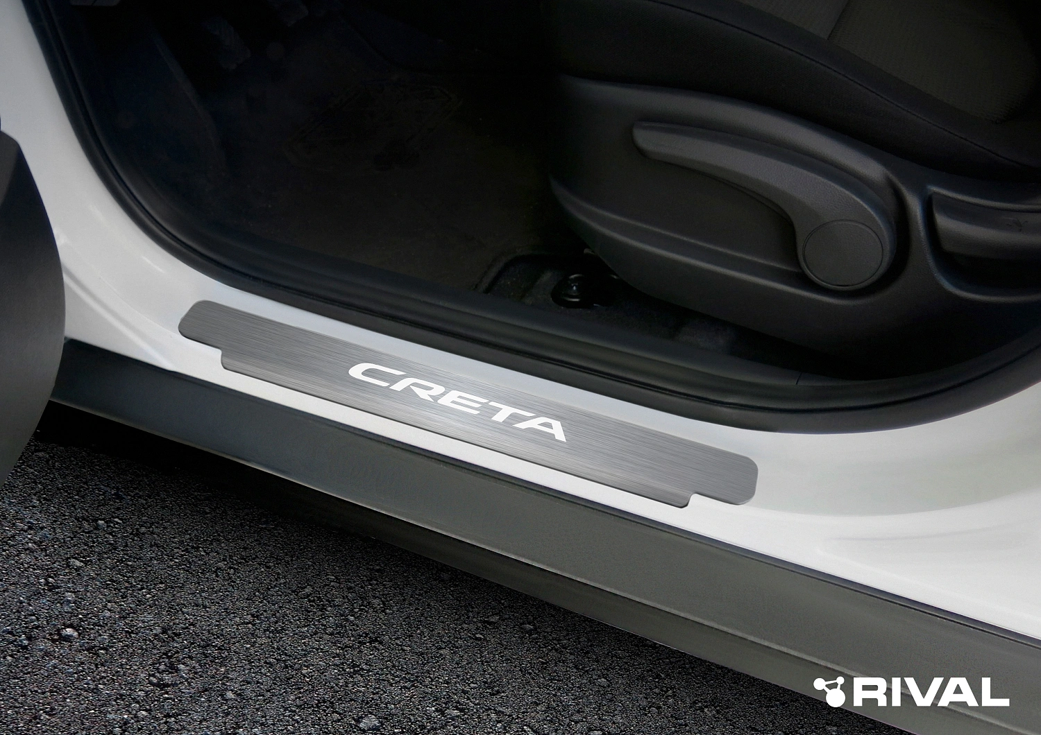 Накладки на пороги Rival для Hyundai Creta I 2016-2021, нерж. сталь, с надписью, 4 шт., NP.2310.1