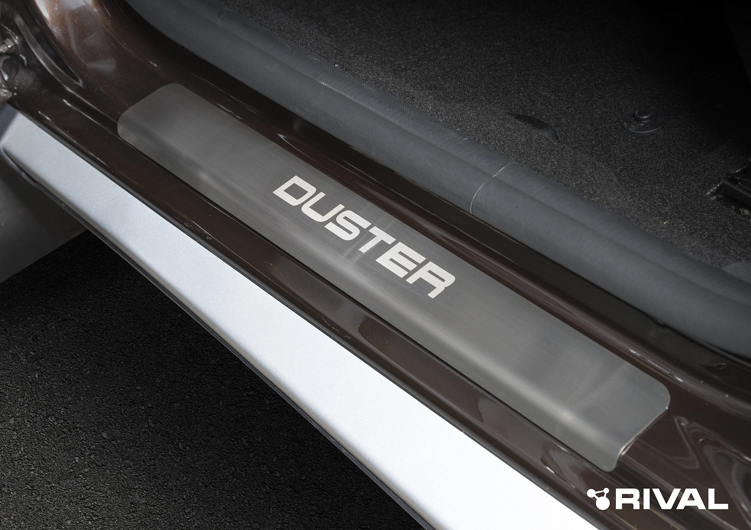 Накладки на пороги Rival для Renault Duster I 2010-2021, нерж. сталь, с надписью, 4 шт., NP.4703.3