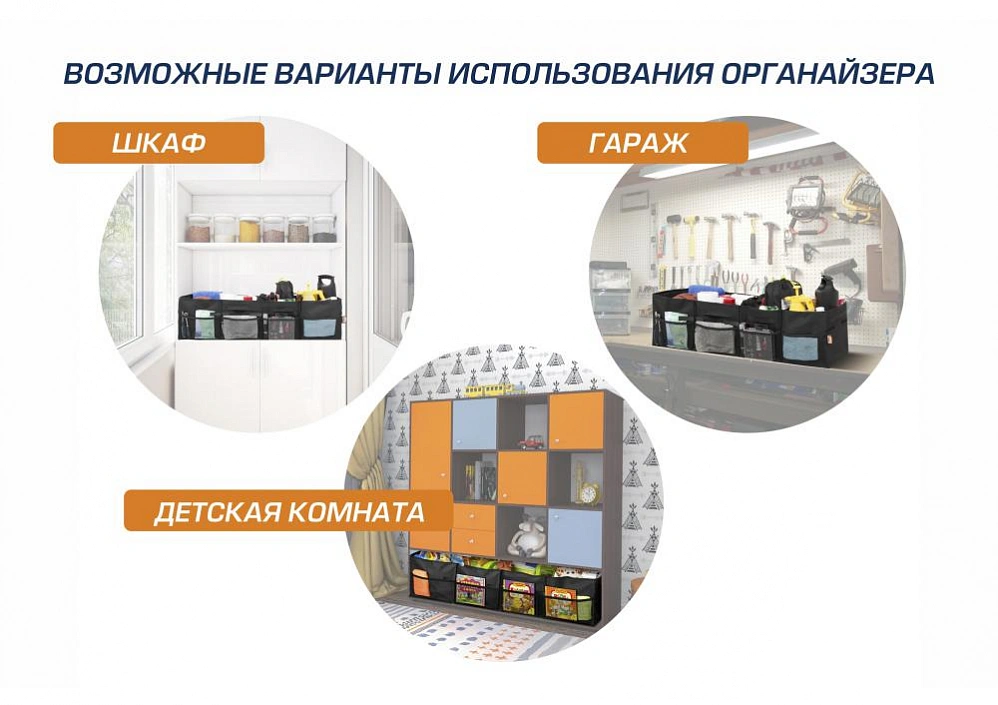 - Конструкция органайзера позволяет регулировать количество секций с помощью липучек.