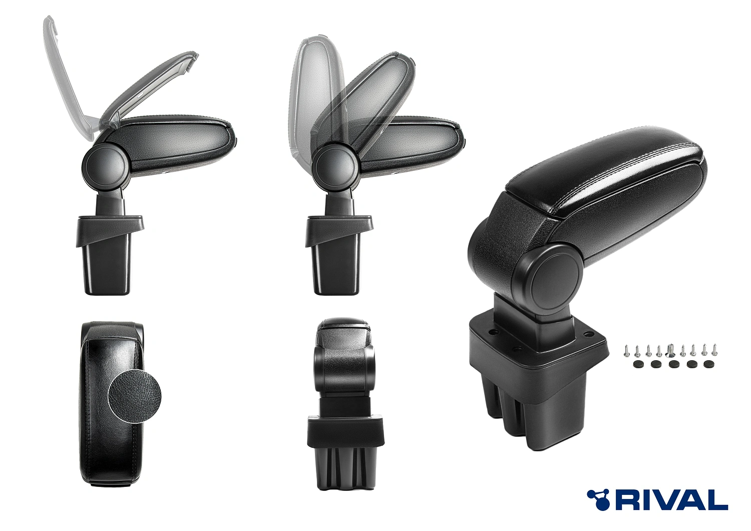 "Подлокотник ""Rival"" изготовлен из прочного пластика и снабжен мягкой вставкой из искусственной кожи.