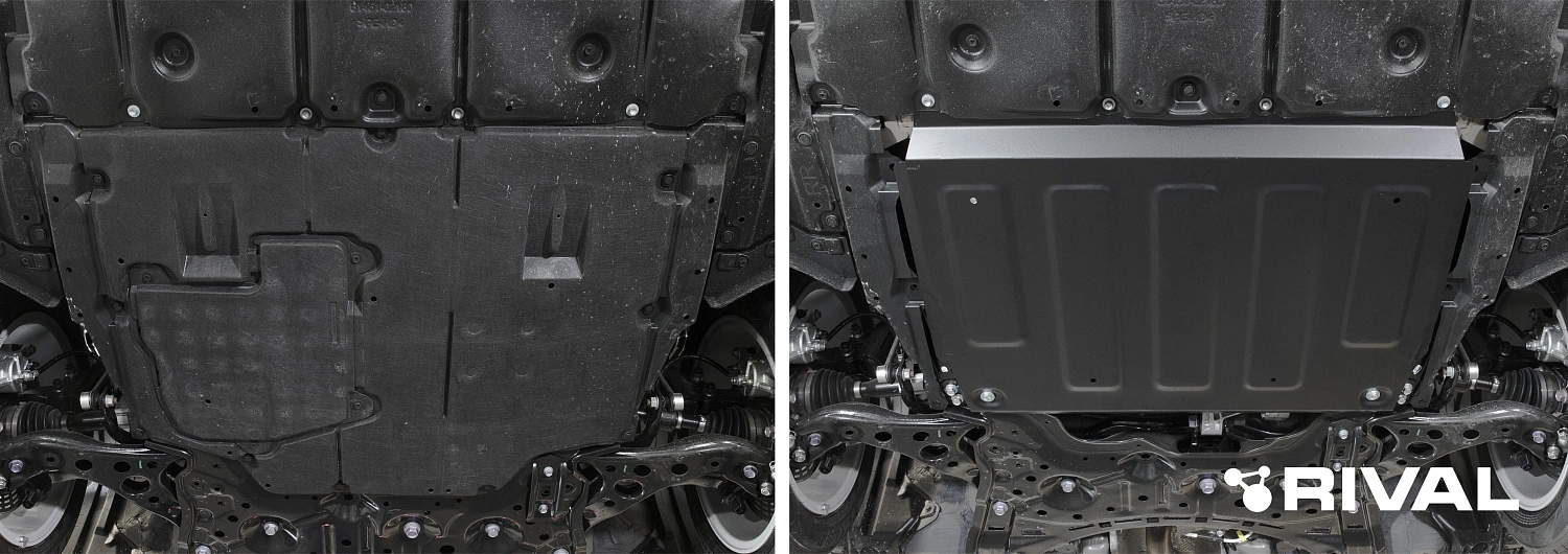 Стальные защиты картера Rival надежно защищают днище вашего автомобиля от повреждений при наезде на бордюры, выступающие канализационные люки, кромки поврежденного асфальта или при ремонте дорог, не говоря уже о загородных дорогах.