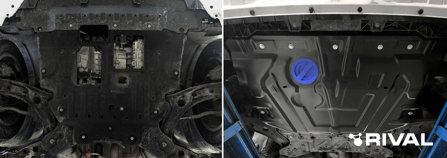 Стальные защиты картера Rival надежно защищают днище вашего автомобиля от повреждений при наезде на бордюры, выступающие канализационные люки, кромки поврежденного асфальта или при ремонте дорог, не говоря уже о загородных дорогах.