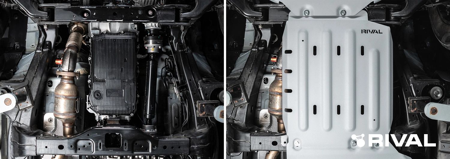 Алюминиевые защиты Rival надежно защищают днище вашего автомобиля от повреждений, например при наезде на бордюры, а также выполняют эстетическую функцию при установке на высокие автомобили.