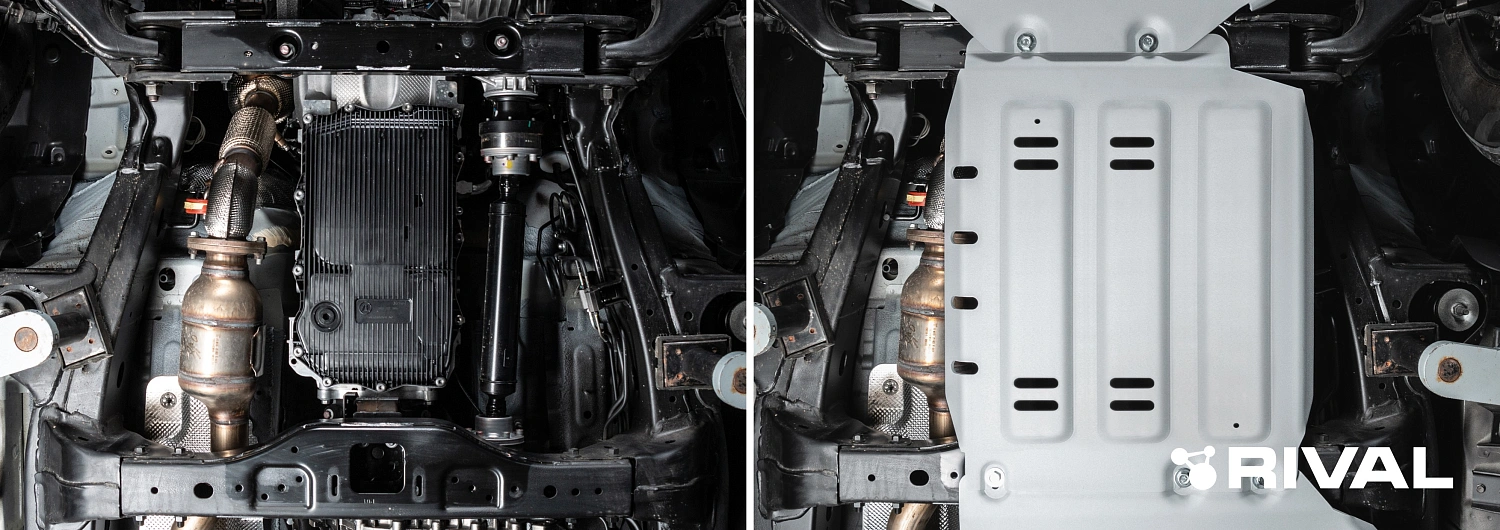 Защита КПП + комплект крепежа, Rival, Алюминий, TANK 300;2023-;2,0;4WD;АКПП;TANK 500;2023-;3,0 (299 л.с.);4WD;АКПП;HAVAL;H9;2024-;2,0;4WD;АКПП;HAVAL;H9;2024-;2,4d;4WD;АКПП;TANK 400(Бензин);2024-;2.0i;4WD;АКПП.