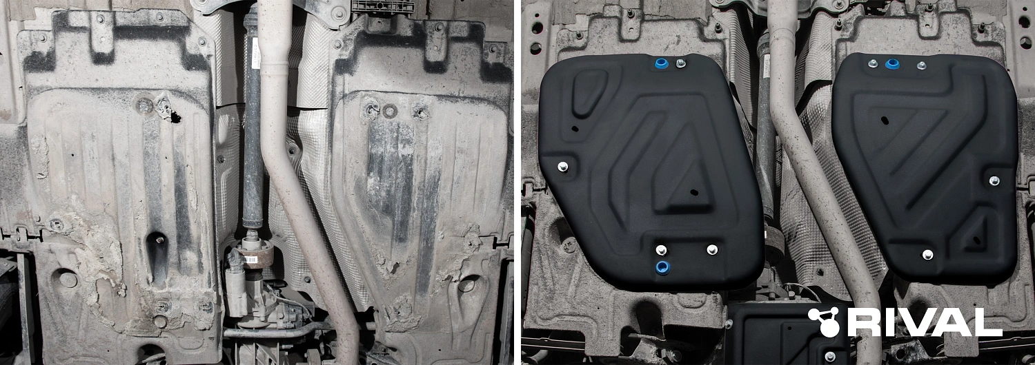 Стальные защиты картера Rival надежно защищают днище вашего автомобиля от повреждений при наезде на бордюры, выступающие канализационные люки, кромки поврежденного асфальта или при ремонте дорог, не говоря уже о загородных дорогах.